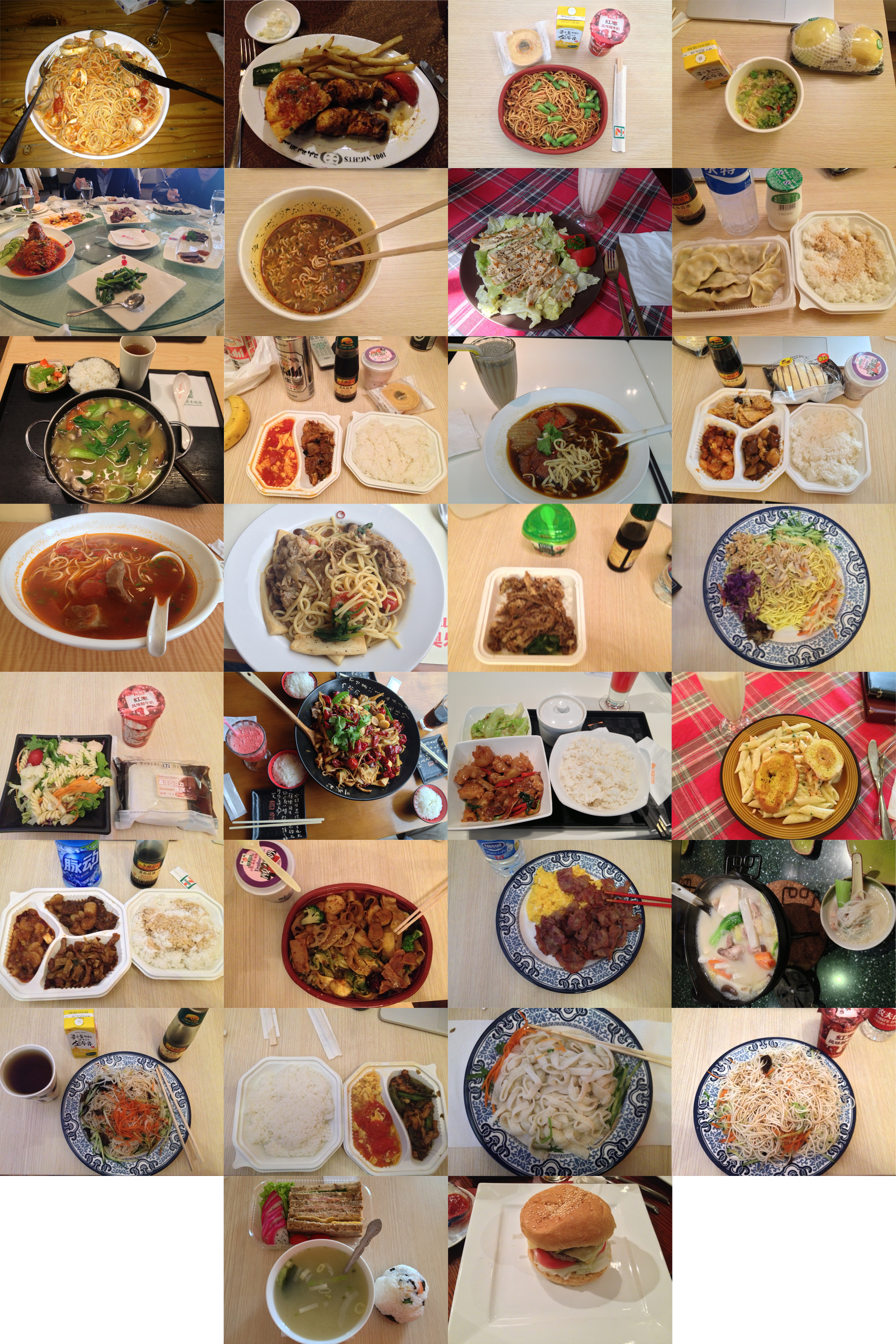 I have started to take pictures of every meal I eat (sometimes I forget though) and will post a little food mosaic each month. As for april, there was nothing really out of the ordinary. No dog, no cat, no grasshopper (at least not knowingly) The most “dangerous” food right now is probably chicken, since the bird flue has now also hit Beijing. I tend however to believe the official CCTV propaganda, which states that cooked or fried chicken is still save.