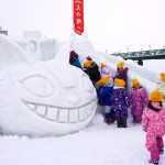 Asahikawa also has a Snow Festival, but compared to the one in Sapporo it’s very very small. This year the festival’s 55th anniversary fell together with Transformer’s 30th anniversary. So the main stage and a lot of the statues had a Transformers theme. As a Ghibli fan I really liked the Totoro statues. The kindergarden kids especially enjoyed the Neko bus ice slide. There was also a 150m grown ups ice slide and you could take a banana boat ride.